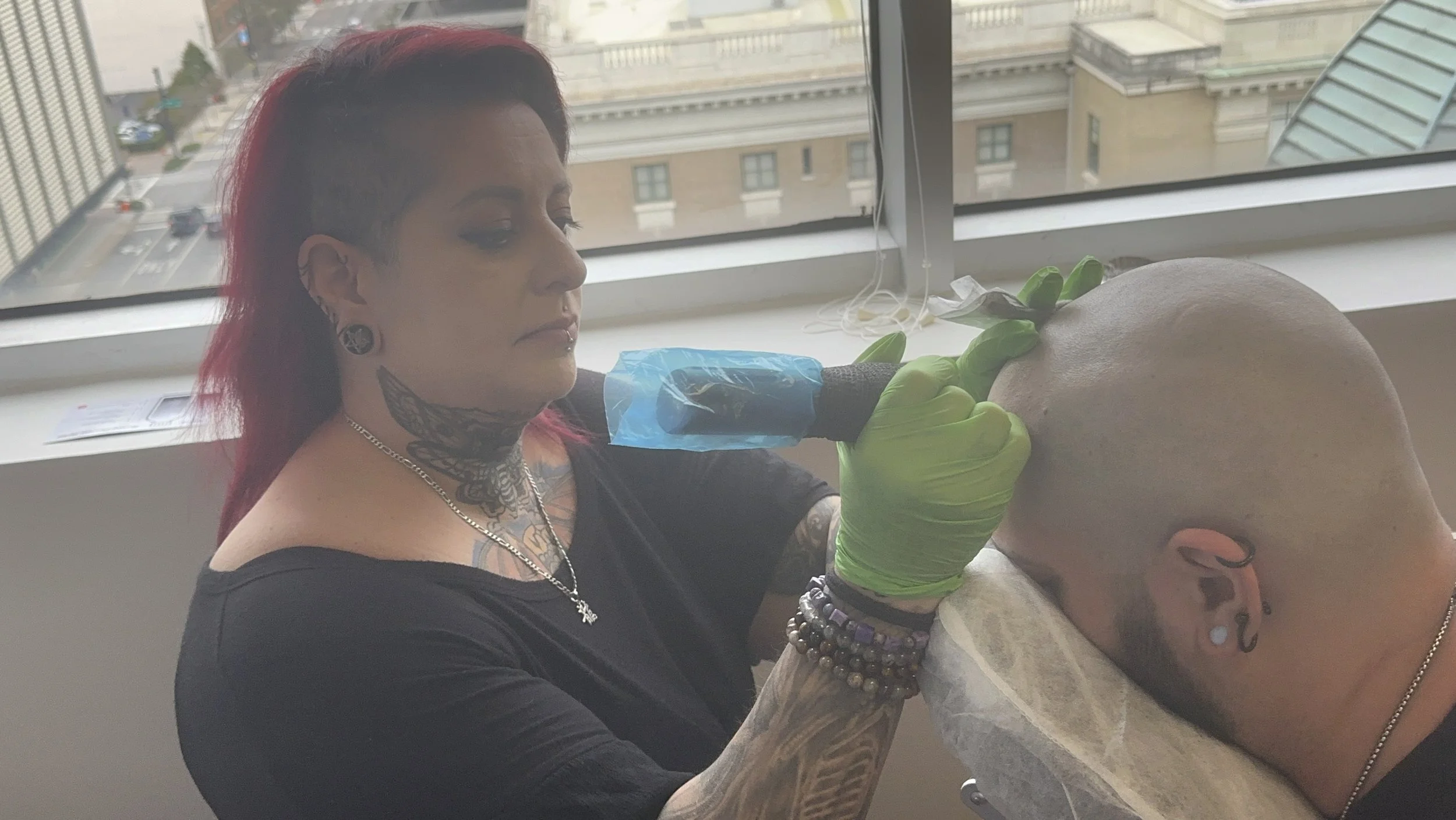 Scalp micropigmentation is a non-invasive treatment that, with micro-needles, deposits organic ink pigments in the scalp. The result creates the appearance of tiny hair follicles that help thicken and restore the appearance of hair.